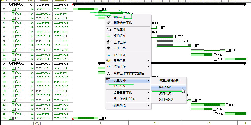 | 这里介绍几种横道图分部的设置(或者取消)方法 |