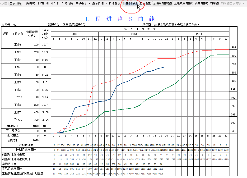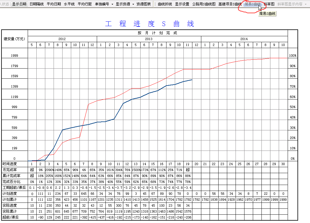 10、基建项目S曲线:与公路S曲线唯一不同,是“项目”一列显示的编号。